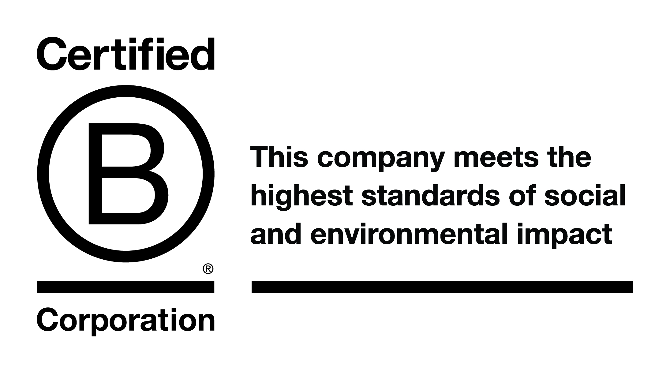 Proudly B Corp certified since 2017, meaning we stick to high social & environmental standards.